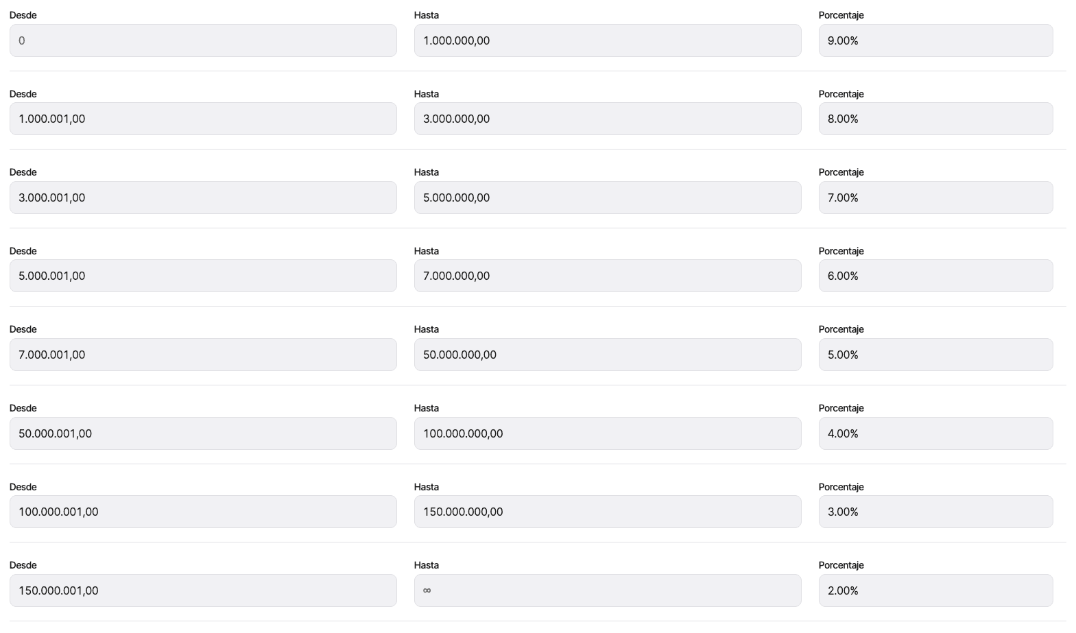 El Precio de dispersión o Comisión por dispersión, tendrán un incremento anual porcentual correspondiente al IPC de Colombia. Este incremento se aplica a partir de Enero de cada año.